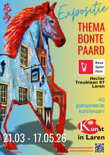 Komend voorjaar presenteert Stichting Kunst in Laren haar nieuwe thematentoonstelling in het Rosa Spier Huis in Laren. Voor deze editie lieten ruim 40 kunstenaars aangesloten bij stichting Kunst in Laren zich inspireren door het breed opgevatte thema “Het Bonte Paard” — met als resultaat een verrassend kleurrijke en veelzijdige expositie waarin werkelijk alles mogelijk bleek.